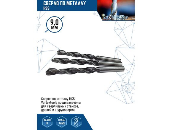 Сверло по металлу VERTEX hss 9,0мм 5шт/уп (10/100/500)