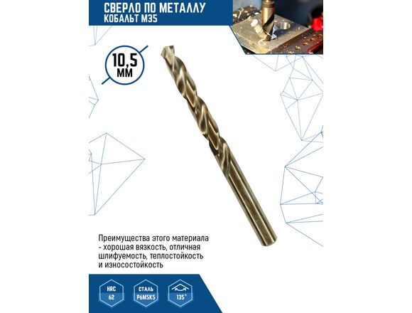 Сверло по металлу VERTEX M35 10,5мм кобальт 5шт/уп(5/50/350)