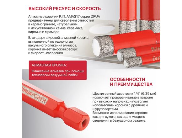 Коронка алмазная по керамограниту для ДРЕЛИ P.I.T. 8мм вакуумная пайка (1/300)
