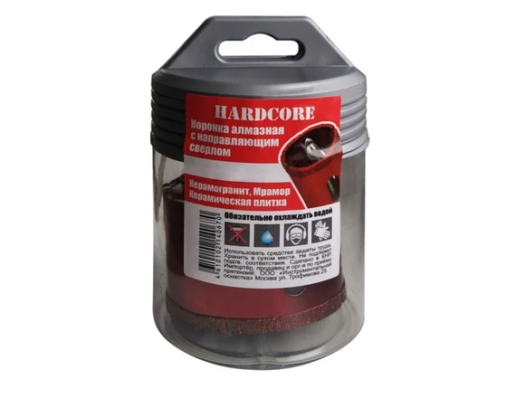 Коронка алмазная по керамограниту и мрамору с направляющим сверлом 120 мм Hardcore 154120 применяется для сверления керамогранита, керамической плитки, мрамора и камня. Сверление необходимо проводить в безударном режиме с водяным охлаждением коронки и места сверления на плитке.