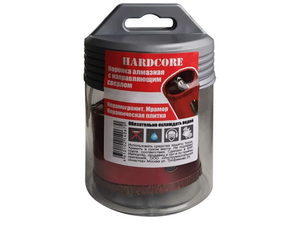 Коронка алмазная по керамограниту и мрамору с направляющим сверлом 85 мм Hardcore 154085 применяется для сверления керамогранита, керамической плитки, мрамора и камня. Сверление необходимо проводить в безударном режиме с водяным охлаждением коронки и места сверления на плитке.