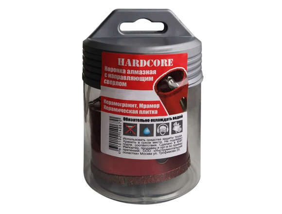 Коронка алмазная по керамограниту и мрамору с направляющим сверлом 90 мм Hardcore 154090 применяется для сверления керамогранита, керамической плитки, мрамора и камня. Сверление необходимо проводить в безударном режиме с водяным охлаждением коронки и места сверления на плитке.