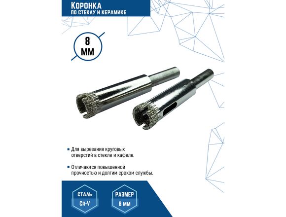 Рабочая кромка коронки имеет алмазное напыление, обеспечивающее высокую точность реза без трещин и сколов. Вертикальные пропилы в корпусе предотвращают деформацию коронки при нагреве во время работы.