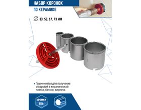 Набор коронок вольфрамовых VERTEX по керамической плитке 5 шт 33,53,67,73мм (1/5/20)