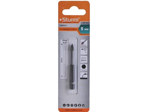 Сверло по стеклу и плитке STURM "крест" 5мм, шестинранный хвостовик (125/500)