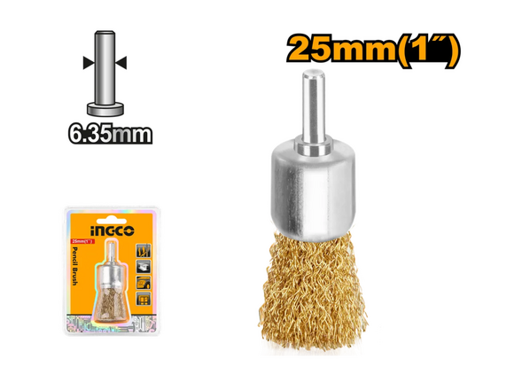 Щетка имеет цилиндрический хвостовик диаметром 6.35 мм. Корпус чашеобразной формы, оснащен волнистой проволокой из латунированной стали, позволяющей оперативно очистить поверхность, затратив минимум времени и усилий.
