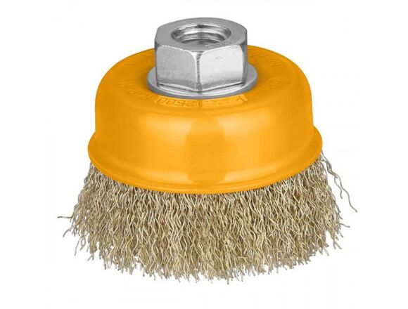 Щетка чашечная INGCO WB11251 используется для работы с УШМ. Служит для зачистки поверхностей покрытых лаком, краской, подходит для устранения ржавчины на металлических изделиях.