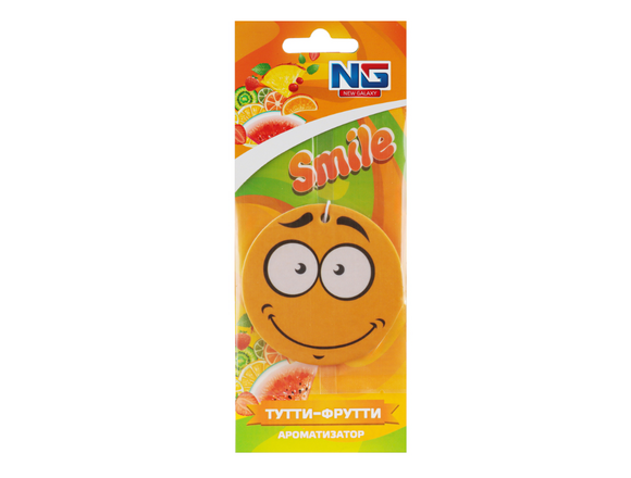 Ароматизатор бумажный NEW GALAXY Смайл бумажный, тутти фрутти, Дизайн GC 794-380 выполнен из плотной бумаги и пропитан парфюмированым средством. Может располагаться в любом месте машины и обеспечивать в салоне приятный аромат и нейтрализацию посторонних запахов на длительное время.