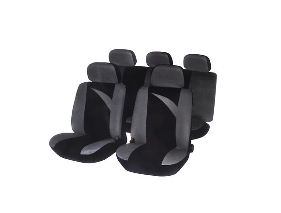 Чехлы автомоб 9 пр., полиэстер, Дельта, 3 молн. в спинке, черный/серый, NEW GALAXY