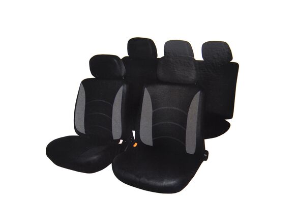Чехлы автомоб 9 пр., полиэстер, Гамма, 3 молн. в спинке, 3 молн. в сидении, черный/серый, NEW GALAXY