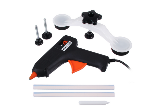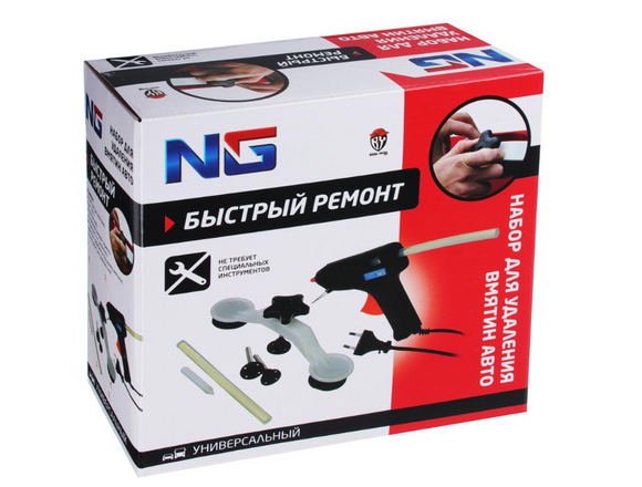 Набор для удаления вмятин авто NEW GALAXY коробка 759-035 используется для кузовного ремонта автомобилей. Прибор подключается к обычной сети 220 В. Особое преимущество состоит в том, что для работы с устройством не требуются ни физическая сила, не специальные навыки, поэтому воспользоваться им могут даже изящные автоледи. Набор быстро устраняет вмятины, не оставляя следов. Предотвращает возможность повреждений при неумелом использовании благодаря конструкции арочного моста. Набор подходит для любых транспортных средств, не требует дополнительных приборов и расходных материалов.