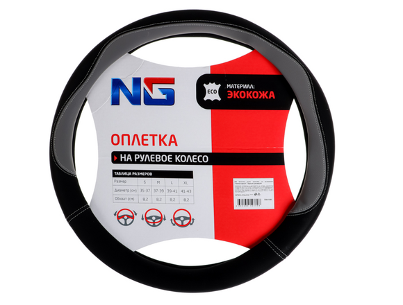 Оплетка руля, экокожа, со вставками "темно-серый", черный, размер М NG (1/25)