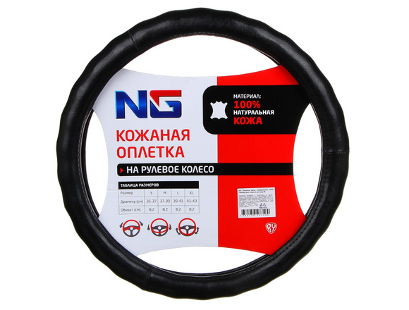 Оплетка руля NEW GALAXY натуральная черная кожа ГЛЯНЕЦ, размер М (37-39см)