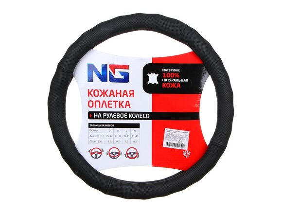 Оплетка руля NEW GALAXY натуральная перфорированная черная кожа, размер М (37-39см)