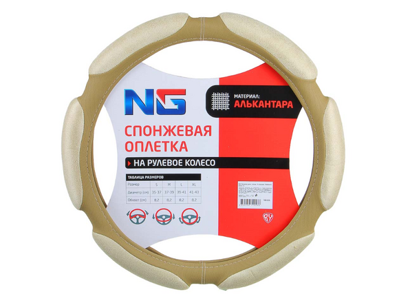 Оплетка руля, спонж, 6 подушек, бежевый, разм. (L) NG (1/25)