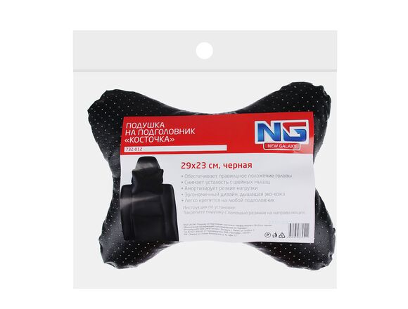 Подушка на подголовник "косточка" перфор.экокожа, 29x23см, черная NEW GALAXY