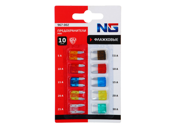 Предохранители флажковые MINI 5-30 А, набор 10 шт NG (20/500)