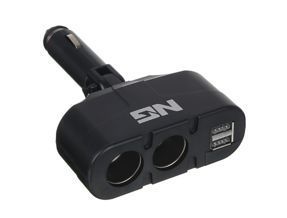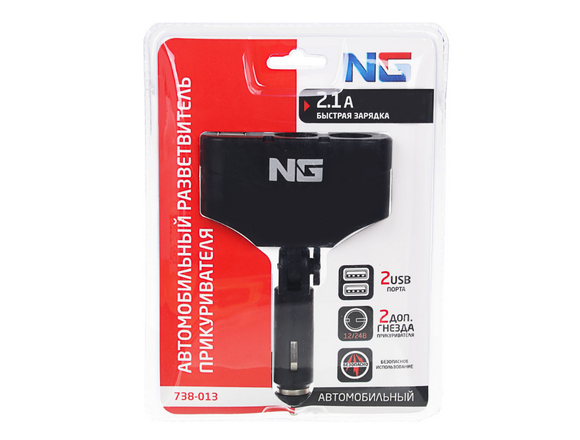 Разветвитель прикуривателя в авто, 2 гнезда, 2хUSB, 60 W, 2.1А, 12/24В, пластик NG (1/120)