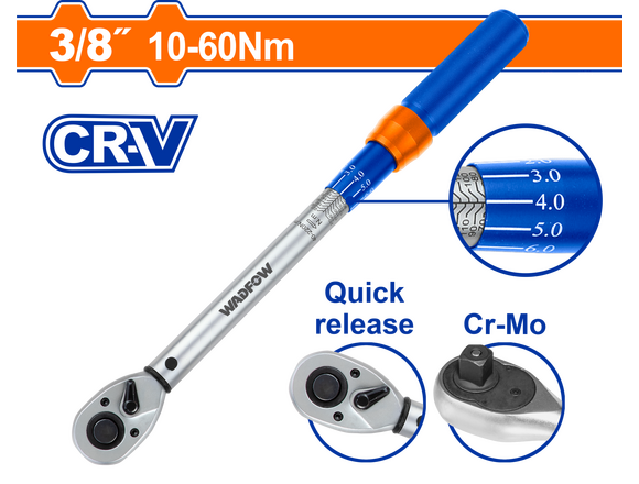 Ключ динамометрический WADFOW 3/8" 305мм,10-60Нм (1/8)