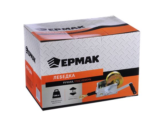 Лебедка ручная ЕРМАК ремень 1350кг, длина 8,5м