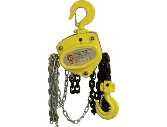 Цепная таль Калибр ТЦ-1,5/3 00000024406 используется при проведении строительных работ и в автомастерских для поднятия тяжестей весом до 1.5 тонн на высоту до 3 метров. Таль оснащена кованым крюком с предохранительным карабином, предотвращающим падение груза во время подъема. Металлический корпус защищает внутренние узлы от повреждений.