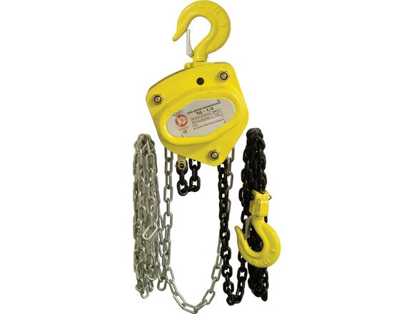 Цепная таль Калибр ТЦ-1/3 00000024405 предназначена для поднятия грузов весом до 1т на высоту до 3 м при проведении строительных или автогаражных работ. Таль оснащена кованым крюком с предохранительным карабином, предотвращающим падение груза во время подъема. Окрашенный металлический корпус невосприимчив к коррозии.