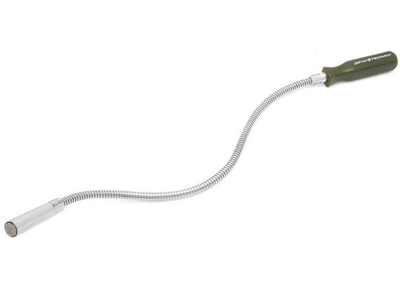 Гибкий магнит до 0,7 кг Дело Техники 500 мм 838107 позволяет извлекать различные закатившиеся металлические мелочи из под мебели или машины. Инструмент представляет собой гибкий стержень с магнитом на конце и рукоятку для удержания.