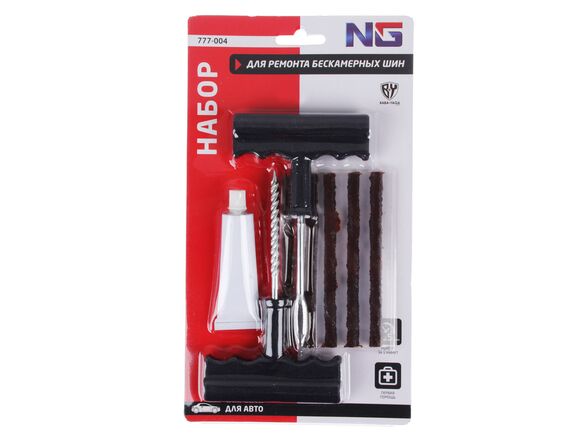 Набор для ремонта бескамерных шин NEW GALAXY №2: клей, 5 жгутов, T-инструмент 777-004 позволяет быстро и эффективно устранить прокол и продолжить поездку. При проколе менее 6 мм ремонт можно провести прямо на обочине без демонтажа покрышки.