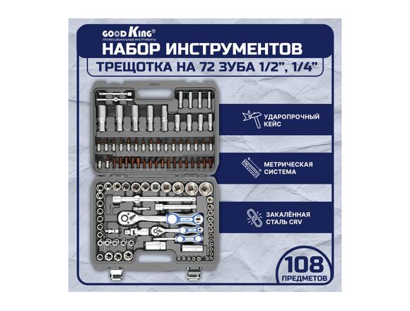 Набор головок GOODKING 1/2"-1/4" 108пр (1/5)