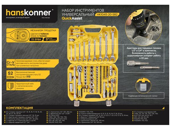 Набор головок HANSKONNER 82 предметов 1/2" и 1/4"+КЛЮЧИ (1/4)