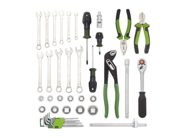 Набор инструмента 1/2" в сумке 44шт Дело Техники 620943 включает в себя разнообразное множество ручных инструментов и приспособлений для выполнения широкого спектра ремонтно-сборочных работ. Такой набор подойдет для использования в быту, автосервисах и прочих столярно-слесарных мастерских. Все компоненты удобно расположены в сумке из масло-водоотталкивающей ткани Oxford.