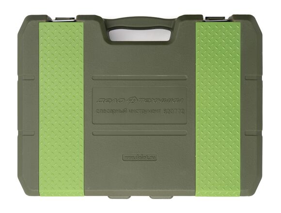 Корпус набора инструмента 1/2, 1/4 72 предмета ДТ/4 Дело Техники 620772 из хромванадиевой стали, которая обладает повышенной прочностью и долгим сроком службы.