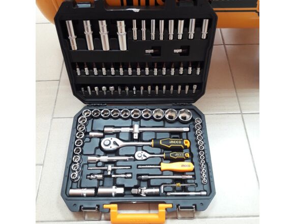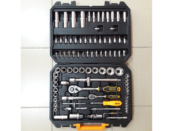 Набор инструментов INGCO 1/4 и 1/2, 94 предмета HKTS42941 включает в себя 94 предмета. Все компоненты выполнены из прочного и качественного металла, рукоятки трещоточных ключей изготовлены из нескользящего двухкомпонентного материала.