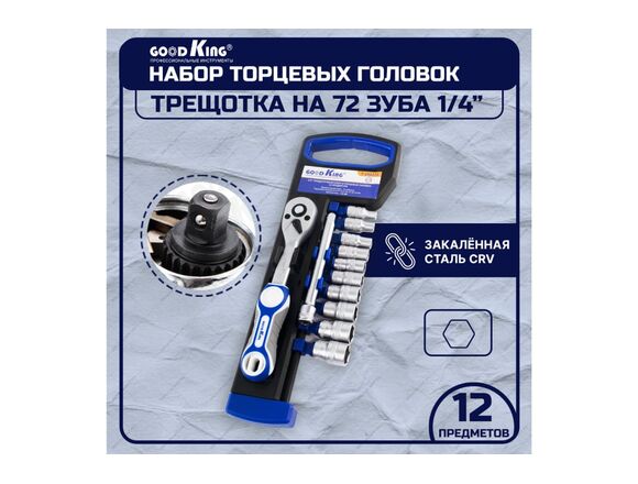 Набор головок с трещоткой GOODKING 12пр 1/4" 4-13мм БЛИСТЕР (1/20)