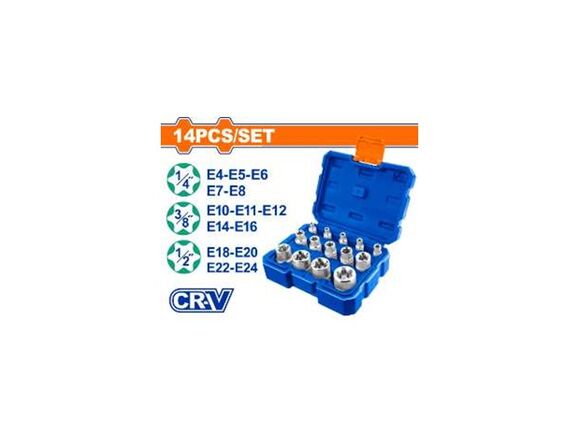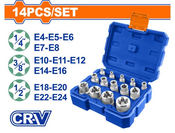 Набор головок торцевых WADFOW 1/4-3/8-1/2 14шт Е4-Е24 (1/20)