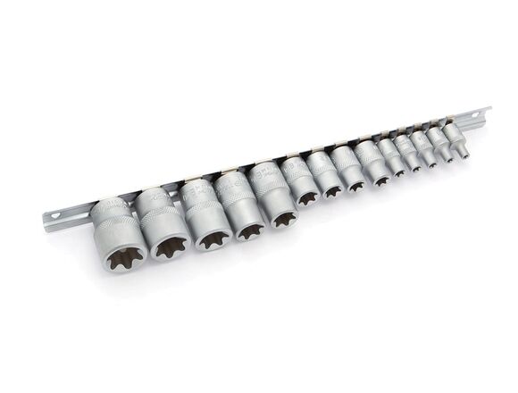 Составляющие набора головок TORX 14 предметов 1/4, 3/8, 1/2 ДТ/20 Дело Техники 623714 выполнены из хромванадиевой стали, прочной и долговечной.