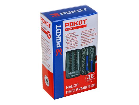 Набор головок и насадок РОКОТ 38 предметов, 1/4"