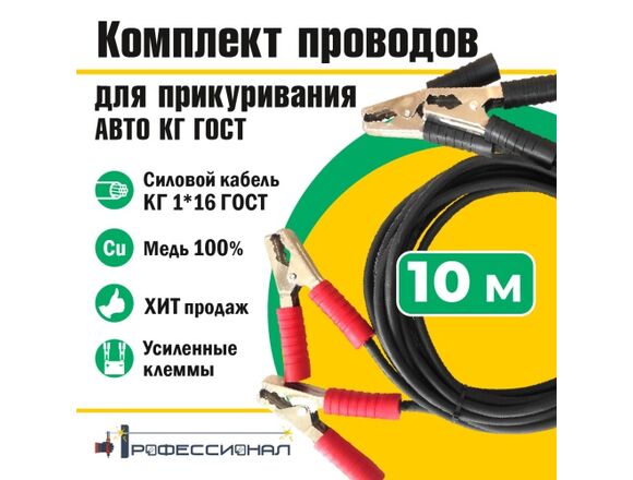 Провода прикуривания АВТО ПРОФЕССИОНАЛ 10м КГ ГОСТ