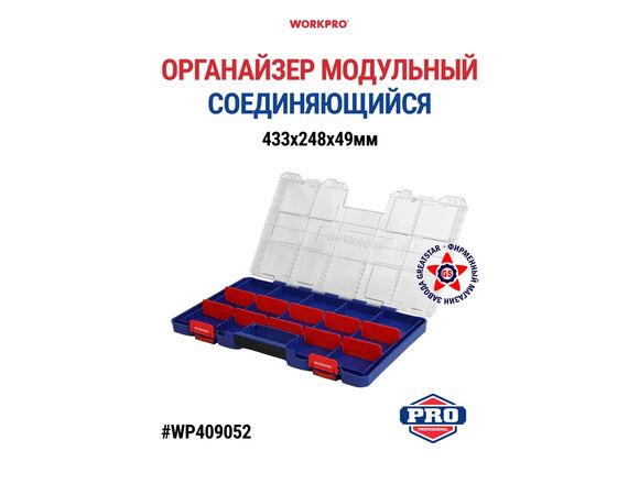 Органайзер штабелируемый WORKPRO 433*248*49мм размер L для мелочей с прозрачной крышкой