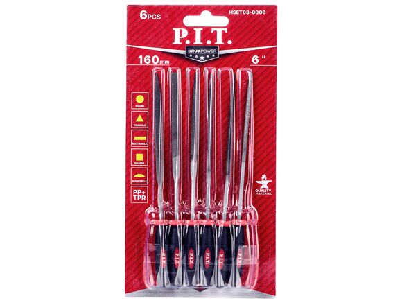 Набор надфилей P.I.T. №3, 6шт, 200/100мм 2-я насечка ручка 2К