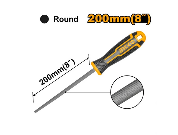 Напильник по металлу INGCO INDUSTRIAL 200мм, круглый, С ПОДВЕСОМ (10/60)