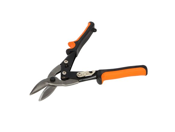 Ножницы по металлу ЕРМАК 250 мм, двухкомпонентная рукоятка, левый 599-097 имеют надежный рычажный механизм, который обеспечивает качественный ровный рез без применения дополнительных усилий со стороны пользователя. Острая режущая кромка отлично сохраняет заточку на протяжении длительного времени. Имеется надежный фиксатор для фиксации изделия в зажатом состоянии. Пластиковая двухкомпонентная рукоятка не выскальзывает из рук и имеет повышенную прочность.