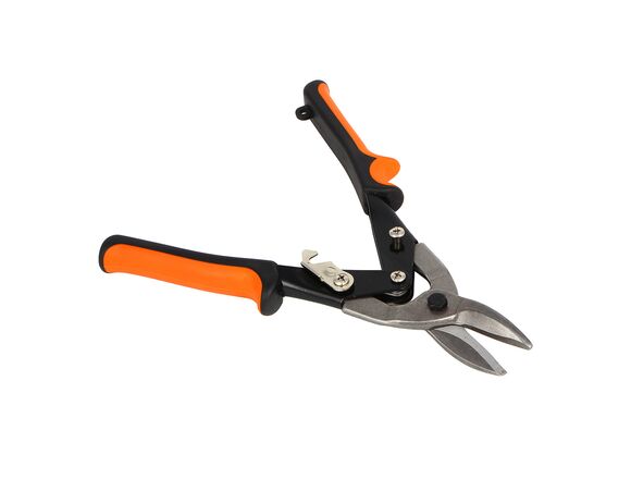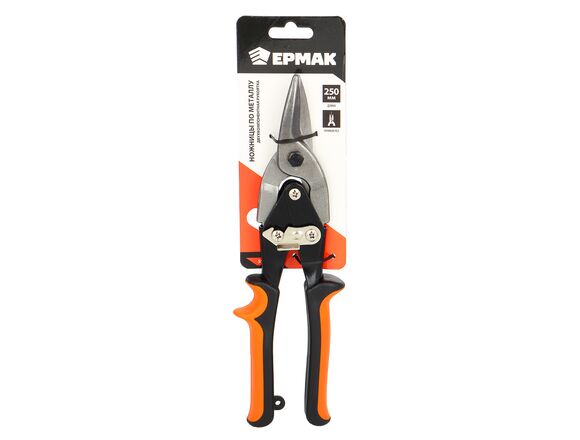 Ножницы по металлу ЕРМАК 250 мм, двухкомпонентная рукоятка, прямой 599-098 имеют надежный рычажный механизм, который обеспечивает качественный ровный рез без применения дополнительных усилий со стороны пользователя. Острая режущая кромка отлично сохраняет заточку на протяжении длительного времени. Имеется надежный фиксатор для фиксации изделия в зажатом состоянии. Пластиковая двухкомпонентная рукоятка не выскальзывает из рук и имеет повышенную прочность.