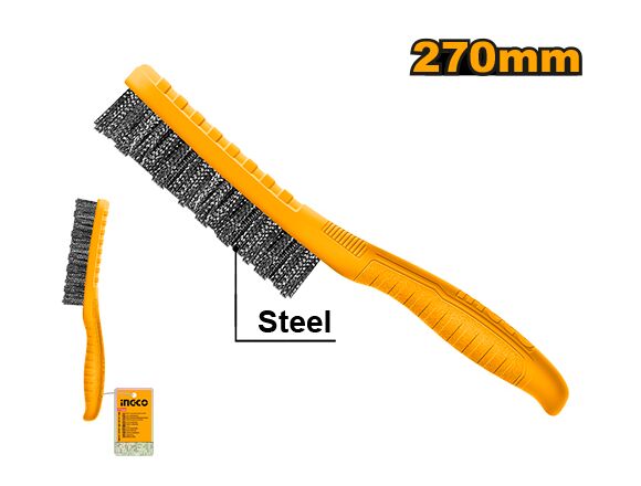 Щетка ручная по металлу INGCO стальная 5 рядов, 270мм, ручка пластик (12/120)