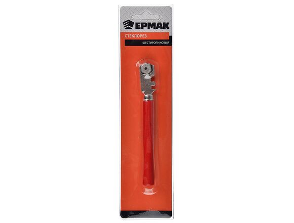 Стеклорез ЕРМАК 6-ти роликовый 669-156 оснащен удобной рукояткой, которая позволяет работать под нужны углом наклона. Инструмент оснащен роликом с плавным ходом. Это позволяет резать стекло любой формы.