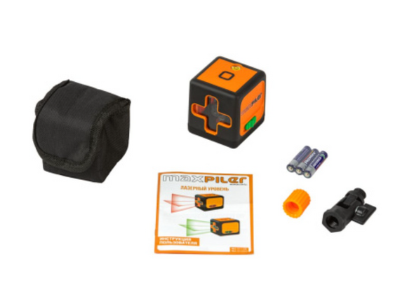 Уровень лазерный MAXPILER 25м, зел.лазер, 2 луча, фикс., резьба под штатив,3х1.5В (ААА) (1/50)