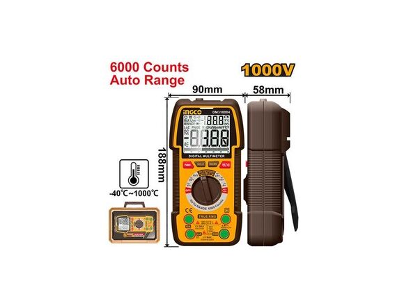 Мультиметр цифровой 1000В TRUR RMS 6000 counts INGCO INDUSTRIAL (6/24)