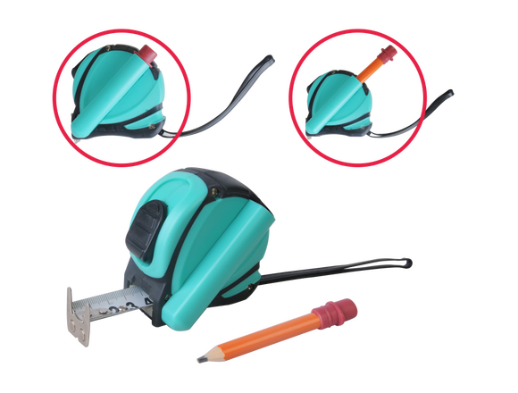 Рулетка STURM 5м*25мм, обрезиненная, МАГНИТ 2-й зацеп, с КАРАНДАШОМ (6/72)