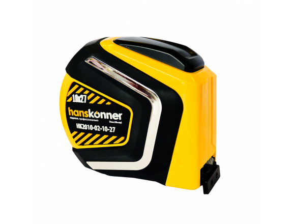 Рулетка Hanskonner 10x27 HK2010-02-10-27 оснащена полотном из хромванадиевой стали с увеличенной толщиной по сравнению с обычными рулетками. Это обеспечивает более дальний вылет без излома ленты. Предельная длина достигает 270 см.