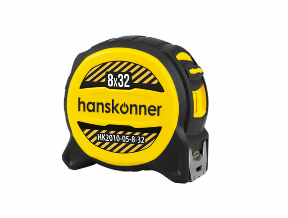 Рулетка HANSKONNER 8м*32мм, 2 стопа, ВЫЛЕТ ПОЛОТНА 3.8м, МАГНИТ ДЕРЖИТ 2кг (4/24)